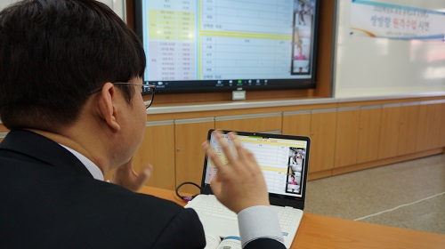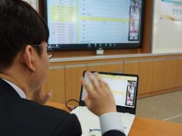 2차 온라인개학을 한 16일 오후 울산 북구 염포초등학교 6학년 1반에서 쌍방향 원격수업이 진행되고 있다.