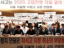 서울 자율형 사립고 교장 연합회 교장과 학부모들이 30일 오후 서울 강남구 중동고등학교에서 '법원의 2019 자사고 지정취소처분에 대한 효력정지 인용'과 관련 기자회견을 하고 있다.