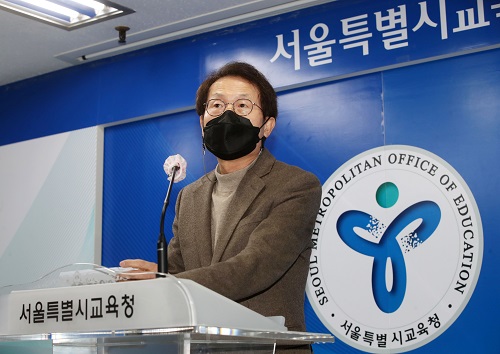 조희연 서울시 교육감이 18일 오후 서울 종로구 서울특별시교육청에서 자사고 판결과 관련 입장발표를 하고 있다. 이날 서울행정법원은 세화고와 배재고 학교법인이 서울시특별교육감을 상대로 낸 자율형 사립고등학교 지정 취소처분 청구 소송에서 원고 승소 판결했다.