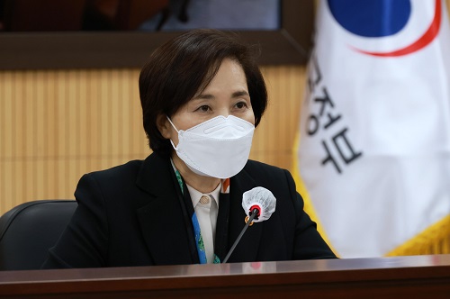 유은혜 부총리 겸 교육부 장관이 23일 오후 세종시 정부세종청사에서 열린 '제5차 포용국가 실현을 위한 사회관계장관회의'에 참석해 발언하고 있다.