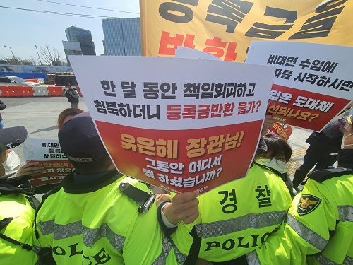이해지 전대넷 집행위원장은 앞서 열린 기자회견에서 "고등교육법에 따라 교육부는 대학을 감독할 의무가 있다"며 "대학 교육의 질이 낮아졌을 때 학생들이 개선을 요구함에도 대학도 교육부도 책임지지 않는다. 대학생의 삶을 정부가 책임지지 않는다는 것"이라고 비판했다.