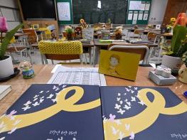 ‘기억교실’이라는 이름으로 불리는 이 공간은 희생된 단원고 학생을 기리기 위한 추모품도 함께 전시됐다.