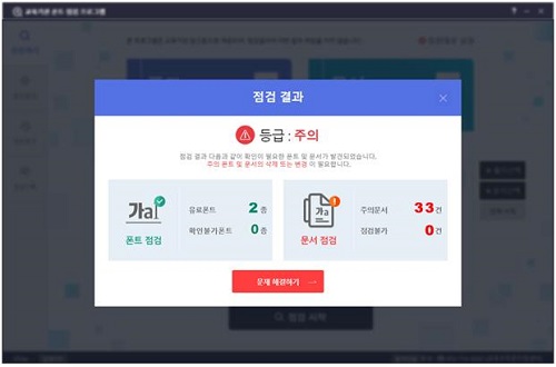 교육부와 한국교육학술정보원(KERIS)은 초·중·고교에서 글꼴(폰트) 관련 저작권 분쟁을 예방하기 위해 '글꼴 점검 프로그램'을 개발해 보급한다고 2일 밝혔다. 자료는 글꼴 점검 프로그램 화면. (자료=교육부 제공) 2021.05.02.