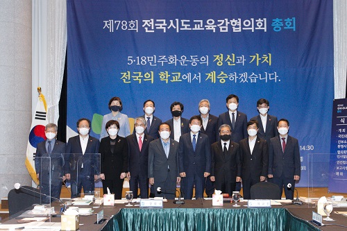 ]전국시·도교육감협의회는 13일 광주시 소재 홀리데이 인 광주호텔에서 개최한 총회에서 이 같은 내용을 담은 5·18민주화운동 교육 전국화 선언문을 채택했다. (사진=전국시·도교육감협의회 제공). 2021.05.13.
