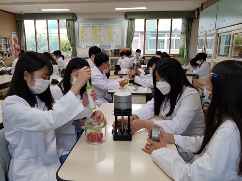 작은 학교 자유학구제를 운영중인 안동 풍산중의 과학실험 수업. (사진=경북교육청 제공) 2021.05.21