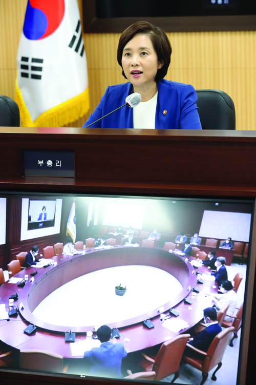 | 유은혜 부총리 겸 교육부 장관이 7월 8일 오후 정부세종청사에서 열린 사회관계장관회의에 참석, 모두발언을 하고 있다. |
