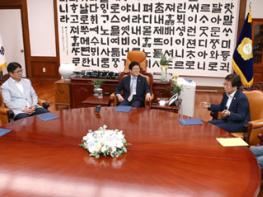 전국시도교육감협의회(교육감협)는 새로 선출된 8대 임원단이 이날 오전 국회에서 박병석 국회의장을 찾아 간담회를 가졌다고 밝혔다. 교육감협은 지난 9일 최교진 세종시교육감을 신임 회장으로 선출하고 임원단을 구성했다.