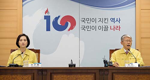 | 유은혜 부총리 겸 교육부 장관과 최기영 과학기술정보통신부 장관이 지난 4월 1일 오후 서울 종로구 정부서울청사에서 면담하고 있다. (사진=과학기술정보통신부 제공) |